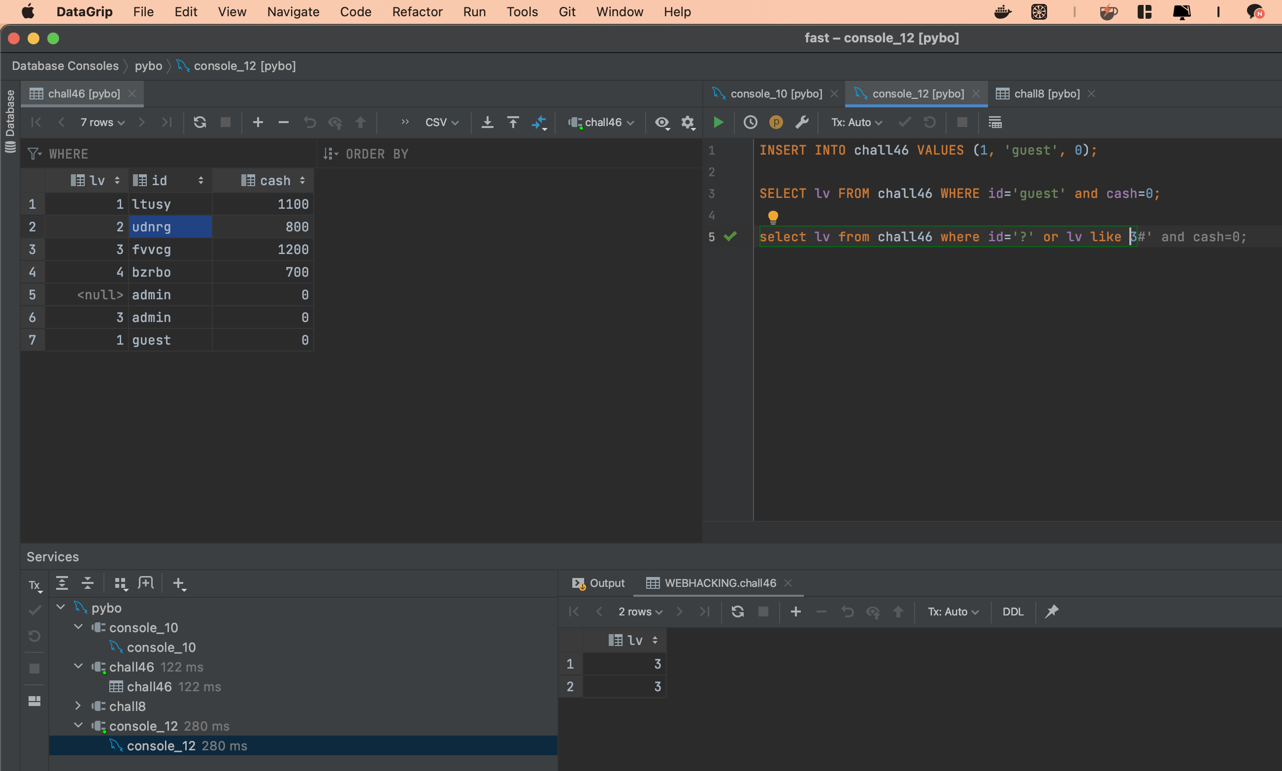 이렇게 가운데를 주석처리를 하면, SELECT lv FROM chall50 WHERE id='?' UNION SELECT 3으로 됨으로 반환값은 3이 나올 것으로 판단이 되었다.