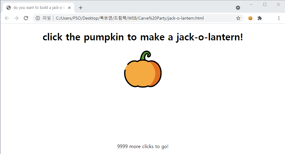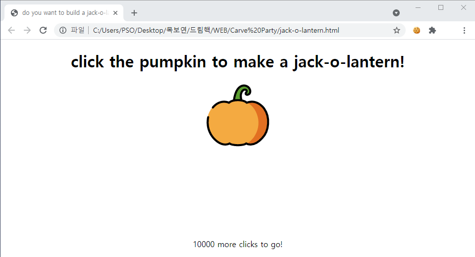 호박을 클릭했을때 while(반복문)이 실행되도록 코드를 한줄 추가했다.