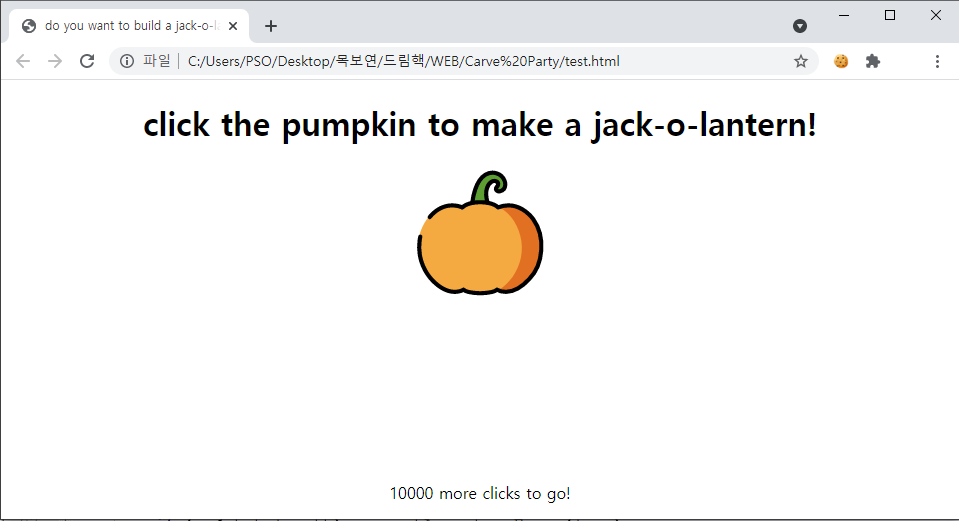 10000번이 자동으로 카운트되고 호박이 덩실거리며 플래그를 띄웠다.