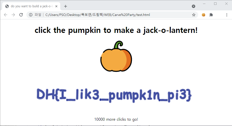 호박을 10,000번 클릭하고 플래그를 획득하라고 한다.