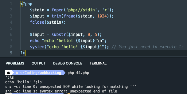 Season 1/워게임 [Webhacking.kr] Old - 44 Write Up 작성자 - LRTK 무슨 기능을 하는 페이지인지 모르겠어서 일단 이름을 넣어서 서버에 보내봤다. 입력한 이름을 ‘hello!’에 이름을 붙어서 출력하는 기능인 페이지로 확인됐다. <?php if($_POST['id']){ $id = $_POST['id']; $id = substr($id,0,5); system("echo 'hello! {$id}'"); // You just need to execute ls } ?> 코드가 주어져서 확인해보니, 입력한 값을 System 함수로 실행된 echo 'hello! {id}'의 결과를 페이지에 출력하고 있는 것으로 확인되었다.하지만 제한된 글자는 5글자로 제한되어 있어서, 해당 조건에 맞춰서 명령어 인젝션을 해줘야 한다. 또한 주석으로 ls를 실행시켜서 결과값을 출력시켜야한다. 나는 비박스에서 사용했었던 세미클론(;)을 이용하여, 동시에 두개의 명령어를 실행시켜서 출력하려는 시도하였지만 echo 'hello! ';ls'가 되어서 ls 명령어가 작동하지 않았다. 혹시 ls''가 작동되는지 확실하지 않아서 한번 시도를 해보니, 작동이 되었다. System 함수 안에서도 작동이 잘 되어 문제 페이지에 시도를 해봤다. Flag 파일이 있는 것을 볼 수 있었다. 하지만 해당 파일의 이름이 flag값으로 보이지 않았다. 혹시나 하여 파일을 요청하니, 다행히 파일을 열람할 수 있었다. flag 값이 기존에 봤던 값들과 다르고, 인터넷 주소 같아서 한번 들어가보니 일본 노래 유튜브가 나왔다…. 댓글과 동영상을 올린 채널에 들어가봤지만, flag와 관련된 것을 발견할 수 없어서 일단 flag을 제출하니, 포인트를 획득할 수 있었다. 공유하기 게시글 관리 MSS 'Season 1 > 워게임' 카테고리의 다른 글 [Webhacking.kr] Old - 57 Write Up (0) 2021.06.12 [Webhacking.kr] Old - 45 Write Up (0) 2021.06.11 suninatas/웹/5번 문제풀이 (0) 2021.06.09 [dreamhack] proxy-1 문제풀이 (0) 2021.06.08 [dreamhack] Carve Party 문제풀이 (0) 2021.06.08 Contents 당신이 좋아할만한 콘텐츠 [Webhacking.kr] Old - 57 Write Up 2021.06.12 [Webhacking.kr] Old - 45 Write Up 2021.06.11 suninatas/웹/5번 문제풀이 2021.06.09 [dreamhack] proxy-1 문제풀이 2021.06.08 댓글 0 + 이전 댓글 더보기