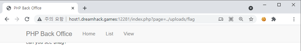 http://host1.dreamhack.games:12281/index.php?page=../uploads/flag |