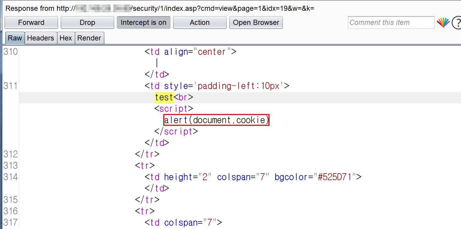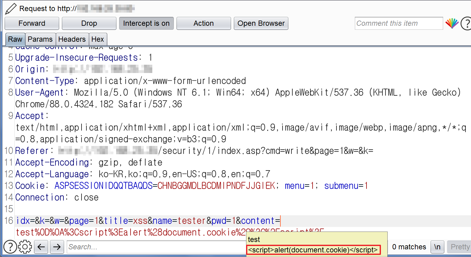 준비사항 : XSS 취약점이 존재하는 페이지, 프록시 툴