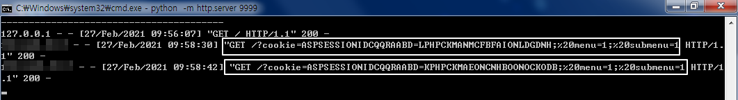 - 이렇게 노출된 쿠키 값을 세션하이제킹 공격을 통해 타 사용자가 얻게 되었을 경우 획득한 쿠키 값의 계정 권한으로