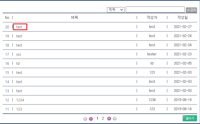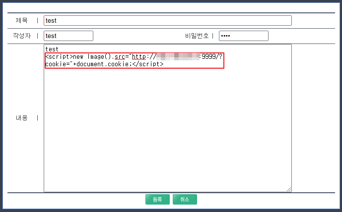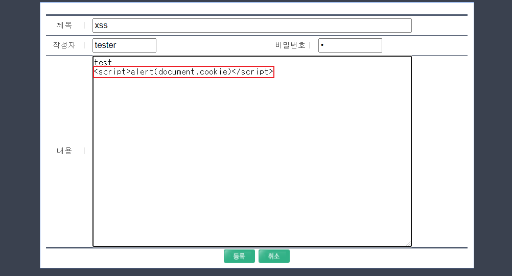 1. 게시글 입력 시 내용에 악성 스크립트 삽입