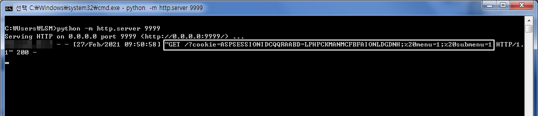 2. 열어놓은 포트로 쿠키값 보내는 스크립트 등록