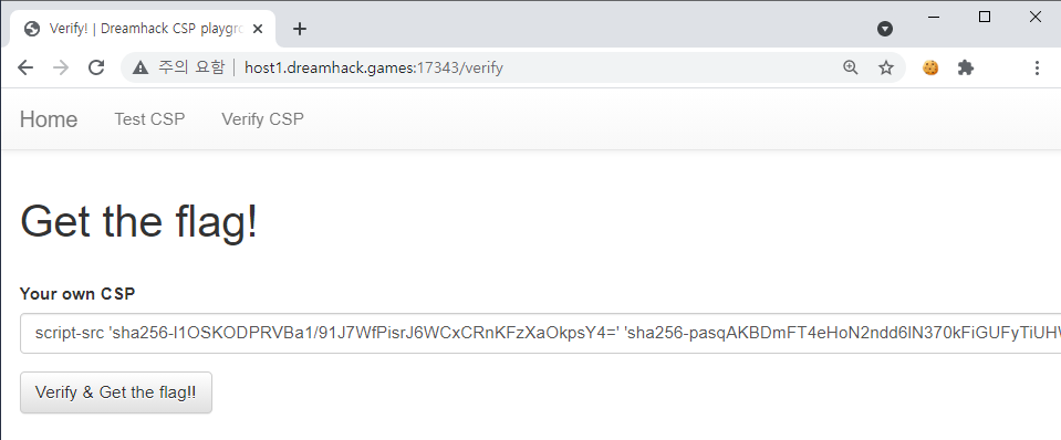 이제 /verify 페이지에서 플래그를 획득해보자.