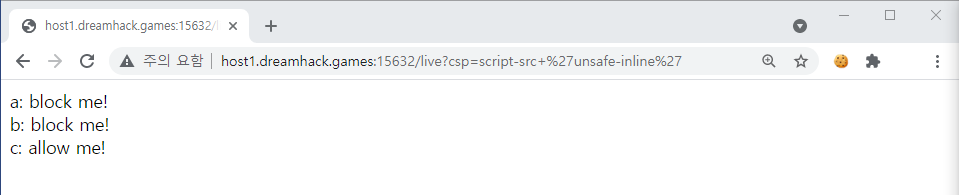 이 것은 script tag에서 inline script를 허용한다는 내용이다.