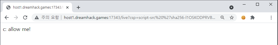 그리고 script-src 정책으로 해당 해시를 넣어줘서 c(), $(document) 구문 만을 실행하도록 한다.