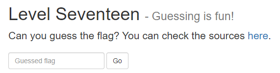 Level 17을 보면 flag값을 추측 할 수 있냐? 라는 질문과 함께 소스코드를 확인하라고 나와있다. 클릭해보자.
