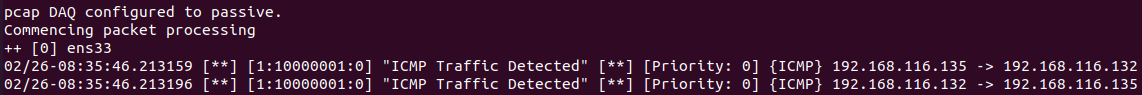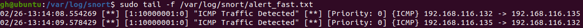 Run the ping test again. If you check on the logs directory, you should see an alert_fast.txt file created. You can tail this file;