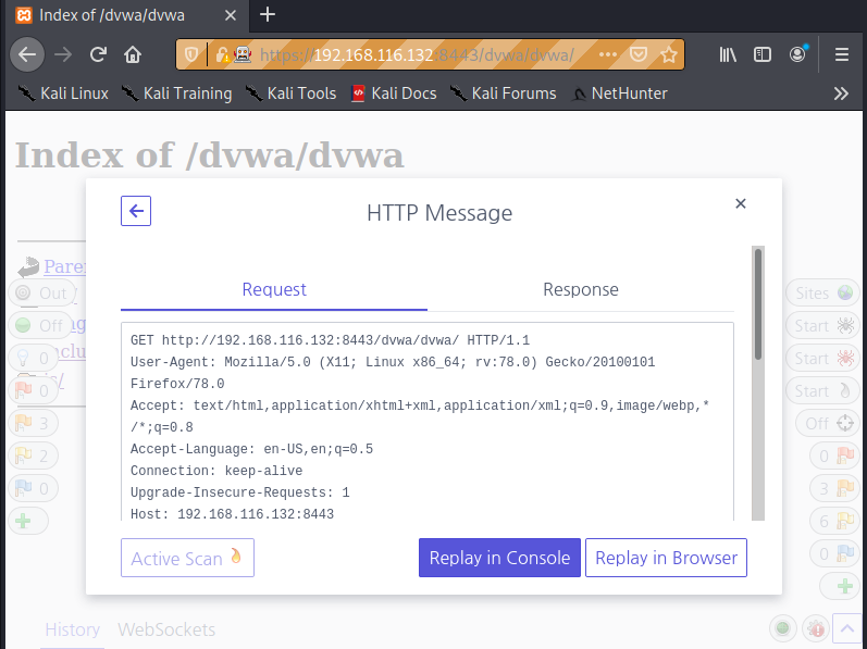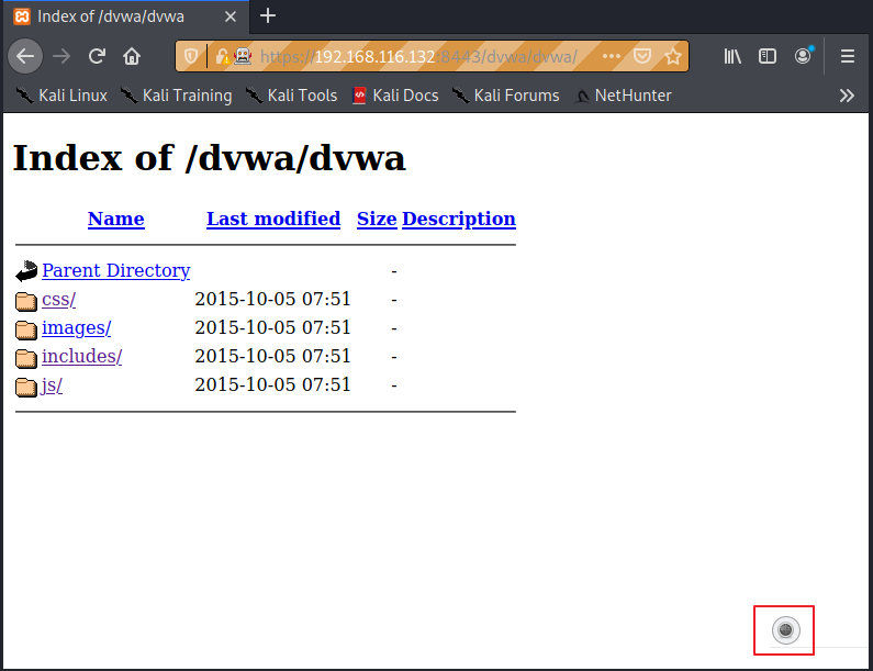 ATK_PC 브라우저에서 공격대상 웹사이트(http://192.168.116.132:8443/dvwa) 정상 접속 확인