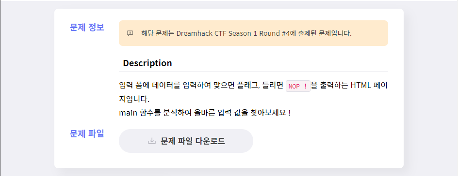 입력 폼에 데이터를 입력하여 플래그를 획득하는 문제이다. 문제 파일을 다운로드해보자.