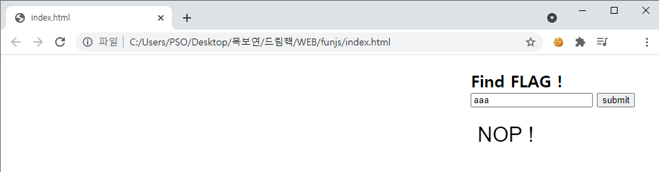 문제에서 설명한데로 틀린 값을 입력하면 NOP! 라는 이미지를 출력한다.