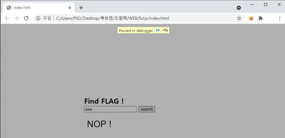 크롬 개발자도구를 이용해서 마지막 flag 검증 로직인 if 문이 구현되기 전 구간에서 breakpoint를 설정하여