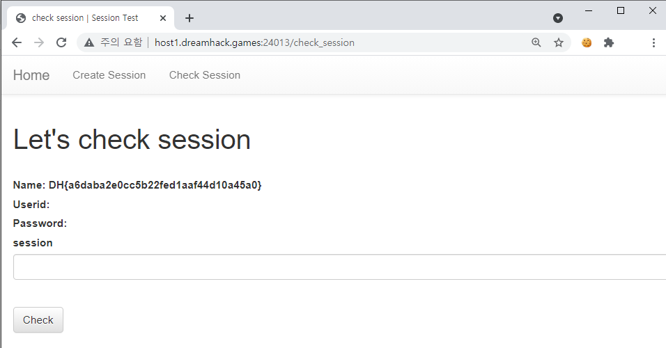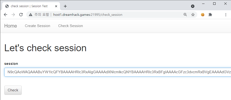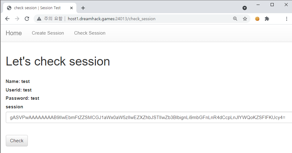 생성된 세션으로 Check Session 페이지에서 복호화를 해보자.