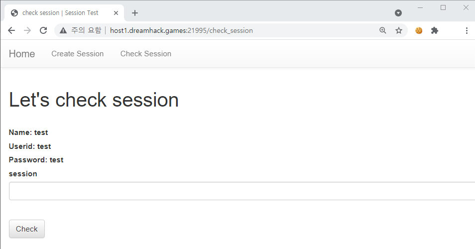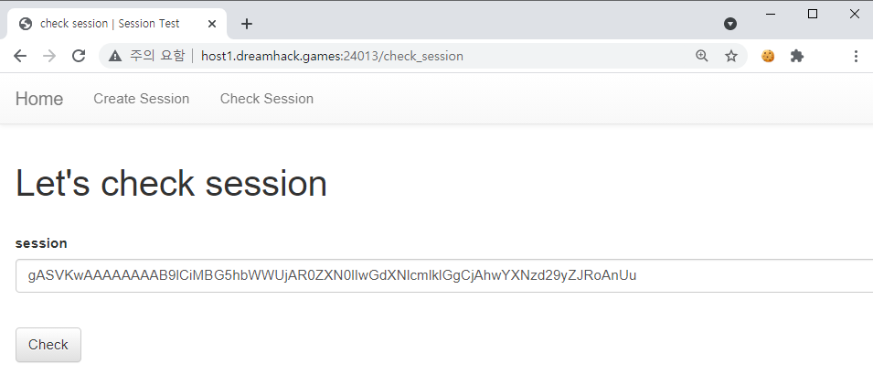 뭐 큰 의미는 없는 것 같다. 그럼 Check Session 페이지로 가보자.