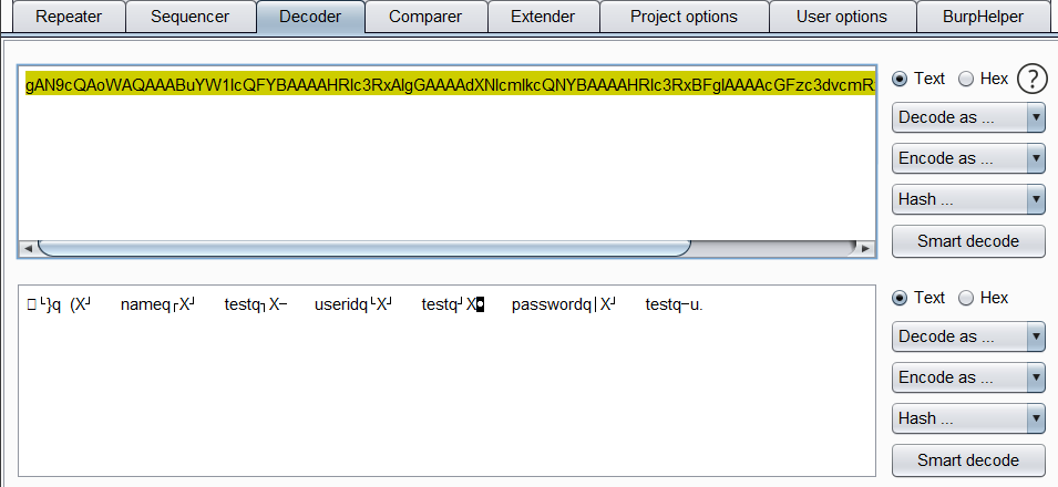 세션 생성에 사용한 Name, Userid, Password 값이 복원되었다.