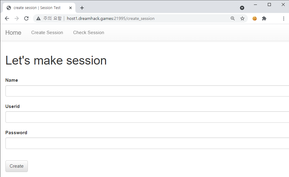 세션을 만드는 페이지로 보인다. 임의의 세션을 생성해보자.