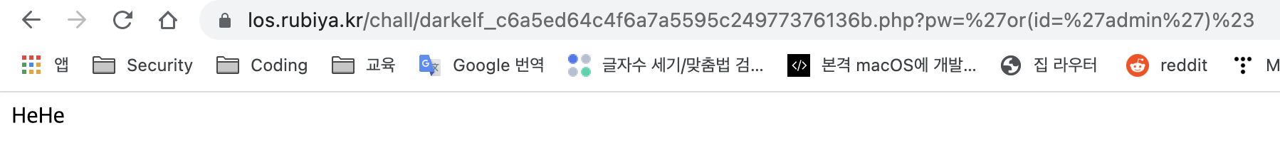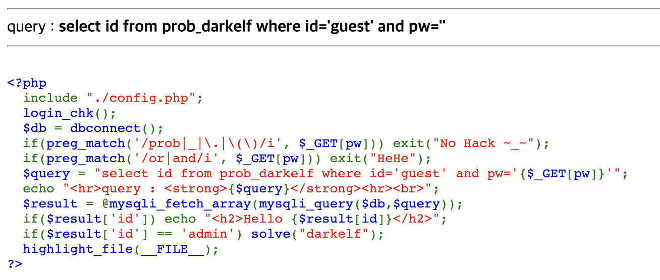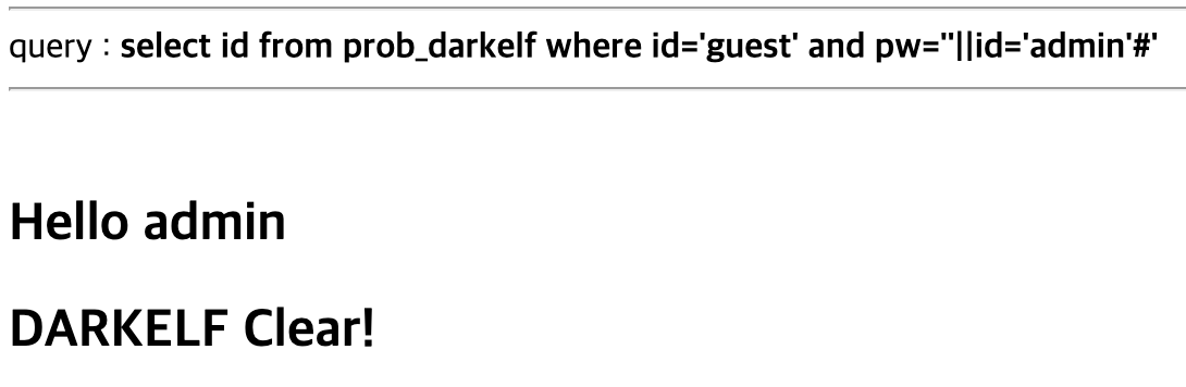 Season 1/워게임 [Lord of SQLInjection] Darkelf Write UP 작성자 - LRTK 이번 문제는 Wolfman 문제에서 발전된 문제이다. Wolfman의 정답을 그대로 보내봤지만, or, and가 필터링 되어서 통과를 못하는 것을 볼 수 있다.그럼 or, and를 대체 문자를 이용하여 필터링을 우회하면 된다. or, and는 ||, &&로 대체할 수 있다. ||, &&를 사용하면 공백을 넣을 필요 없이 구분할 수 있어서 (, )를 사용하지 않아도 된다. 공유하기 게시글 관리 MSS 'Season 1 > 워게임' 카테고리의 다른 글 [Lord of SQLInjection] Orge Write UP (0) 2021.07.16 [websec.fr] easy - Level 08 (0) 2021.07.14 [Lord of SQLInjection] Wolfman Write UP (0) 2021.07.14 [Root-Me]/Web-Client/Javascript - Source (0) 2021.07.14 [Lord of SQLInjection] Orc Write UP (0) 2021.07.12 Contents 당신이 좋아할만한 콘텐츠 [Lord of SQLInjection] Orge Write UP 2021.07.16 [websec.fr] easy - Level 08 2021.07.14 [Lord of SQLInjection] Wolfman Write UP 2021.07.14 [Root-Me]/Web-Client/Javascript - Source 2021.07.14 댓글 0 + 이전 댓글 더보기