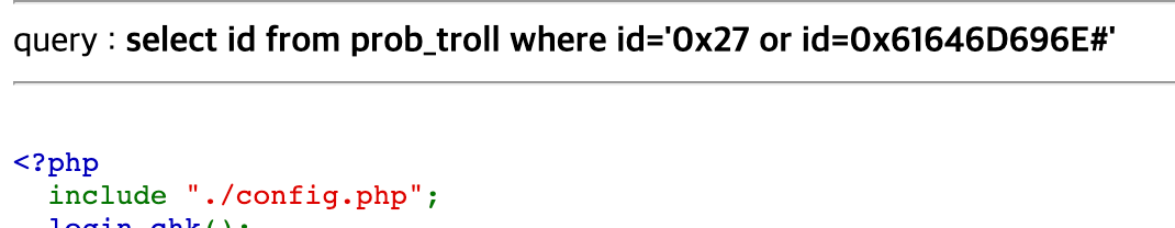 0x27은 '의 아스키코드 Hex 값이다. 혹시나 '를 아스키코드 Hex 값으로 넘겨주면 인식하지 않을까? 라는 생각에 넣어봤지만 실패하였다.