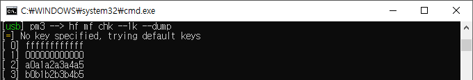② pm3.bat 파일을 실행하고 명령어를 입력하여 태그가 정상적으로 인식되는지 확인한다.