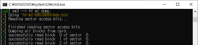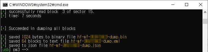 ② 아래 명령어를 입력하여 RFID의 내용을 덤프한다.
