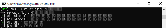 ② 아래 명령어를 입력하여 공 RFID 카드의 UID를 원본 RFID의 UID로 변경한다.