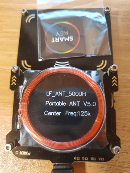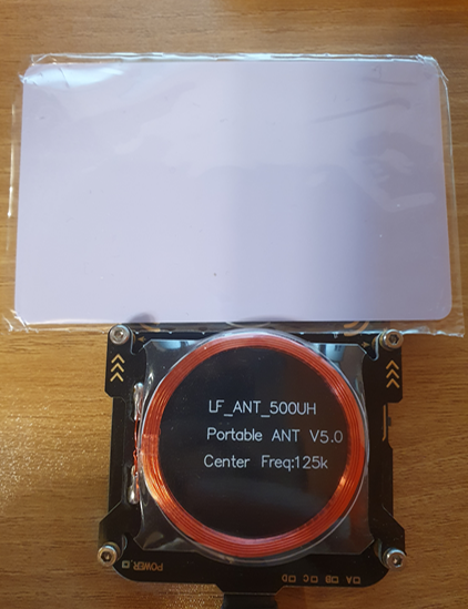 ① RFID 태그를 proxmark3 위에 올려놓는다.