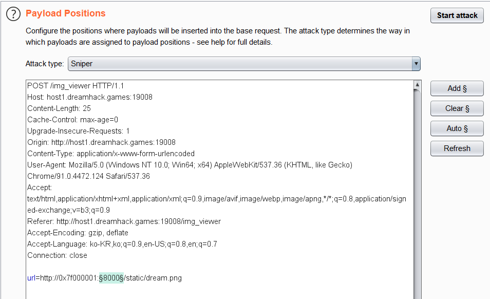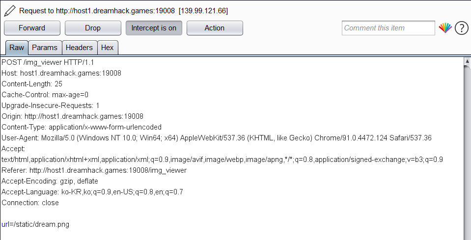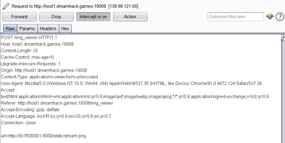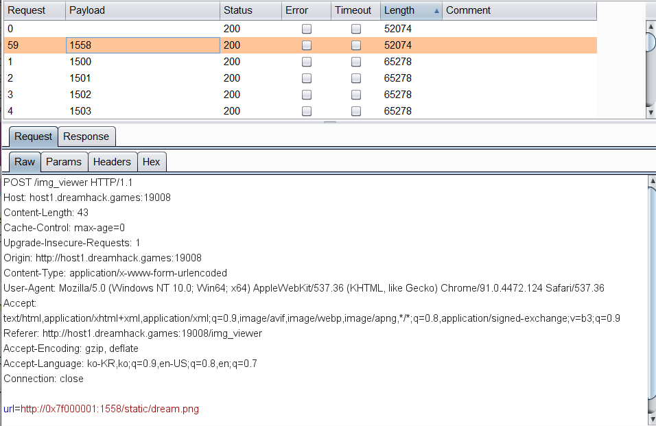 hex 인코딩이 먹히는지 확인하기 위해 8000포트로 접근하여 기존 /static/dream.png 이미지를 읽어보자.