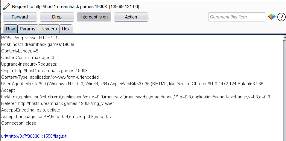 하지만 127.0.0.1이 필터링되기 때문에 HEX 인코딩을 사용해보자.