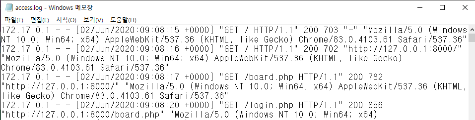 Access log를 확인해보자.