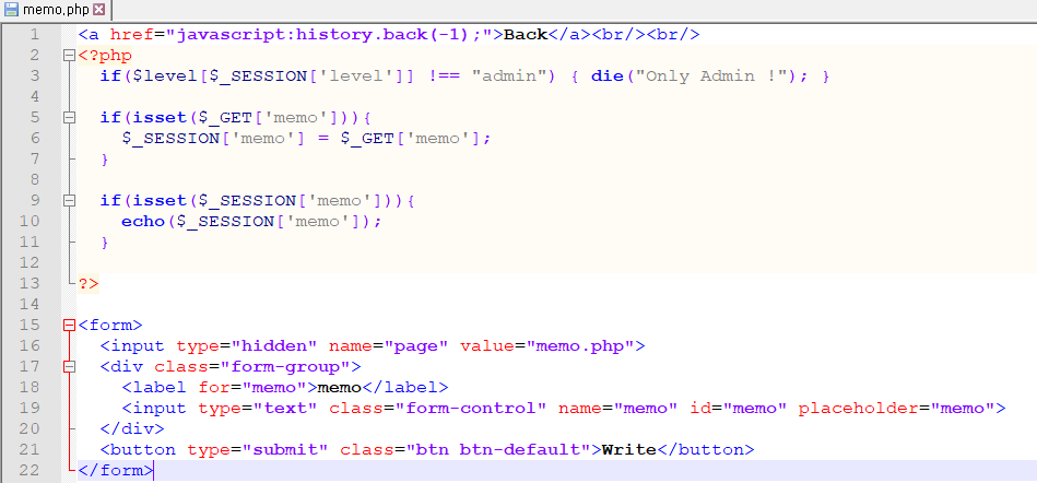 /admin/memo.php 를 보면 memo 파라미터에 입력한 값을 session[memo]에 저장한다.