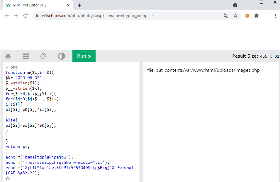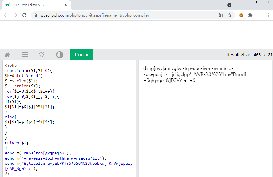 해당 구문을 php online compiler로 돌려보자.