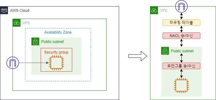 # 네트워크 ACL과 보안그룹 간 차이점