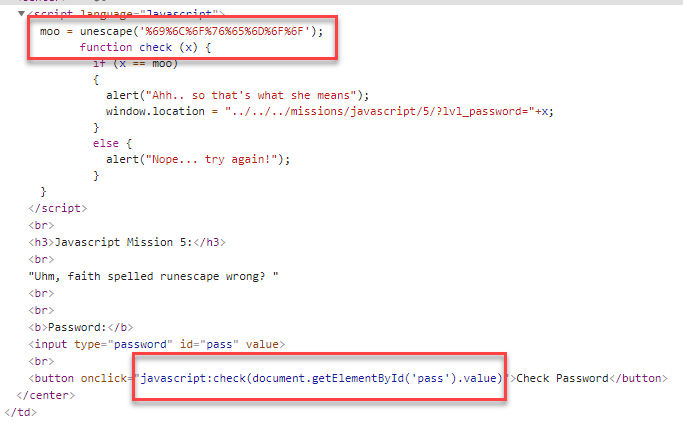 Season 1/워게임 (HackThisSite) Javascript Mission 5 작성자 - Jeonghun 문제를 보니 정답을 구하는 방법은 escape 함수와 연관되어 있어 보임 전 문제와 비슷하게 check() 함수를 이용한다 moo라는 정답 변수에 해당하는 값이 url 인코딩 되어 있다 간단하게 url 디코딩하여 값을 알아본 다음에 입력 하면 그게 정답일듯 싶다. 디코딩한 결과 값을 입력하여 문제 풀이 성공 공유하기 게시글 관리 MSS 'Season 1 > 워게임' 카테고리의 다른 글 [dreamhack] SuperSecure OTP 문제풀이 - 진행중 (0) 2021.07.30 [Root-Me]/Web-Client/Javascript - Authentication 2 (0) 2021.07.27 (HackThisSite) Javascript Mission 4 (0) 2021.07.25 [HackCTF] Web - 보물 풀이 (0) 2021.07.24 [Lord of SQLInjection] Succubus Write UP (0) 2021.07.24 Contents 당신이 좋아할만한 콘텐츠 [dreamhack] SuperSecure OTP 문제풀이 - 진행중 2021.07.30 [Root-Me]/Web-Client/Javascript - Authentication 2 2021.07.27 (HackThisSite) Javascript Mission 4 2021.07.25 [HackCTF] Web - 보물 풀이 2021.07.24 댓글 0 + 이전 댓글 더보기