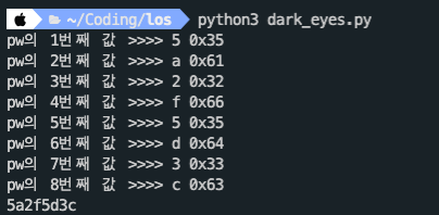 print(f'pw의 {num}번째 값 >>>>', s, hex(ord(s)))