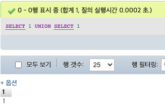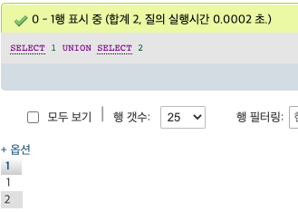 UNION으로 추가한 2가 그대로 출력되는 것을 확인할 수 있다.