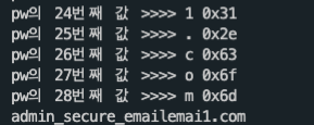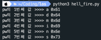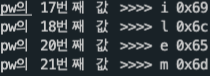 print(f'pw의 {num}번째 값 >>>>', s, hex(ord(s)))