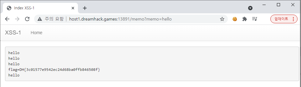 /vuln 페이지에 접속하면 parma 파라미터에 <script>alert(1)</script>가 들어가 있지만