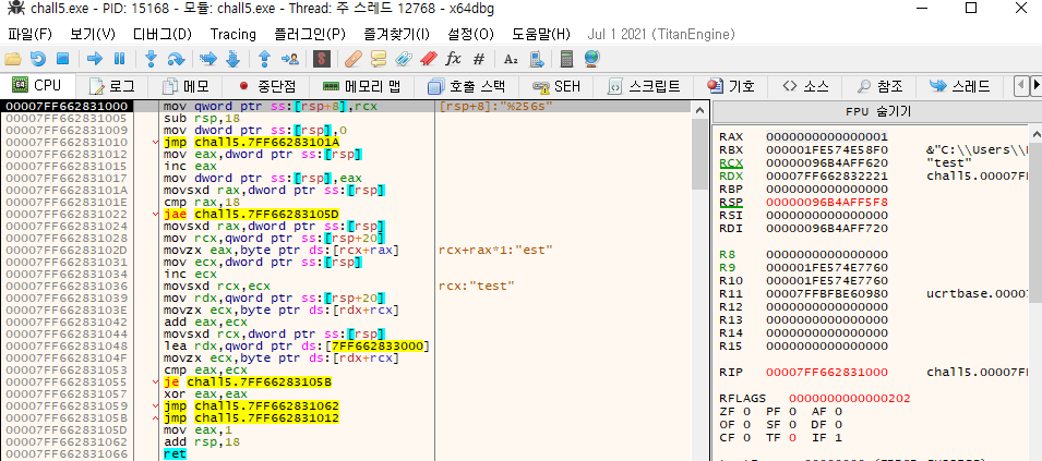 1. [7FF662833000] 주소에 마지막 위치에 저장된 값은 23번째(0x4C), 24번째(0x00)2. 23번째 문자열+24번째 문자열=0x4C 이므로 FLAG의 23번째 문자열은 0x4C3. 23번째 문자열에서 22번째 문자열을 뺀 나머지가 FLAG의 22번째 문자열4. 뒤에서부터 차례로 연산하여 값을 리스트에 저장5. 리스트를 뒤집어서 FLAG를 출력