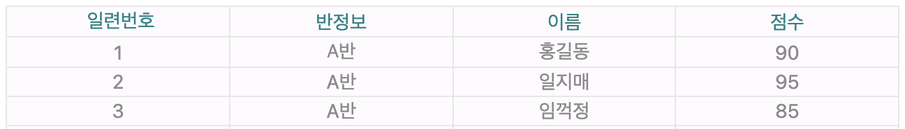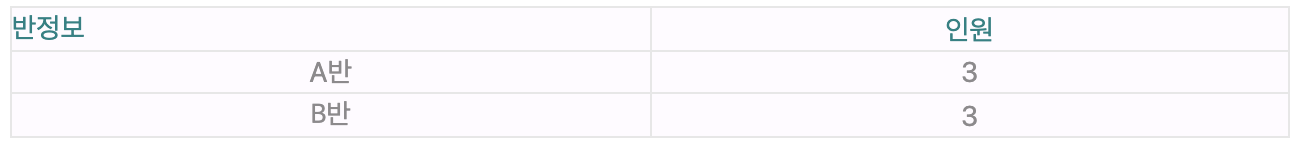 위와 같은 데이터를 반 별로 그룹화 시켜서 집계를 하고 싶을 경우, Group By을 사용하면 된다.