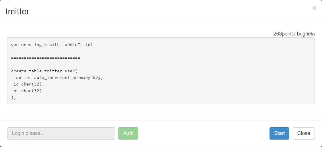 tmitter_user 테이블에 id와 ps가 char(32) 값으로 정해져있는것을 확인할 수 있다.
