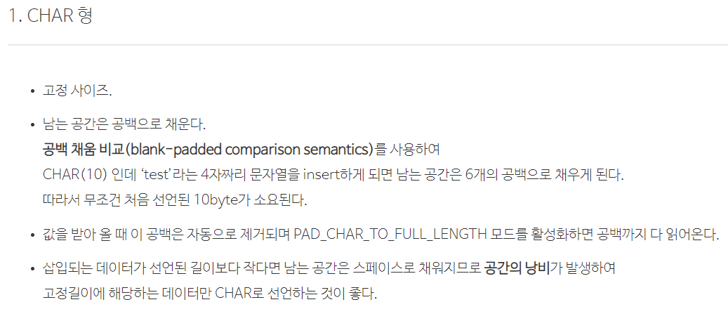 char형은 고정 사이즈로 위와 같이 32자로 고정이 되어 있으면 32자 외에는 검증을 하지 않게 된다. 그렇게 되면 'admin 1'(33자) 입력시 나머지가 공백으로 채워지면서 1앞의 32자 까지만 검증을 하게 되기 때문에 admin으로 중복 가입이 된다.