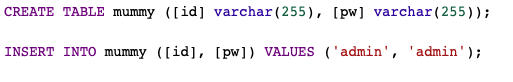 $query = "select pw from prob_mummy where id='admin'";