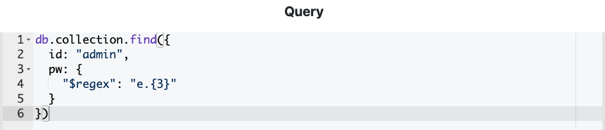 이와 같이 id:"admin", pw:{"$regex":".{4}"}