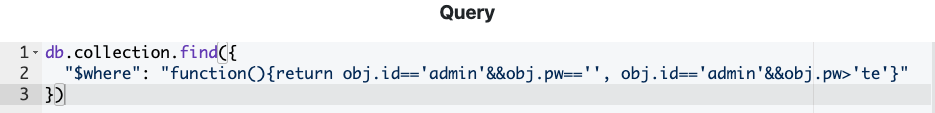 MongoDB에 저장된 admin의 pw과 공격 백터 pw이 일치해야 클리어할 수 있다.