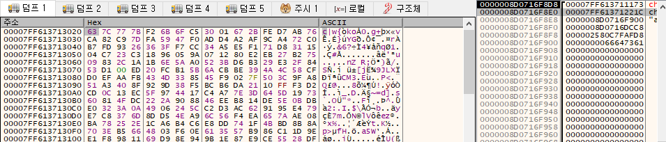 FLAG를 찾기 위해서는 비교하는 문자를 [7FF613713020] 주소 이후의 값에서 찾아내고,