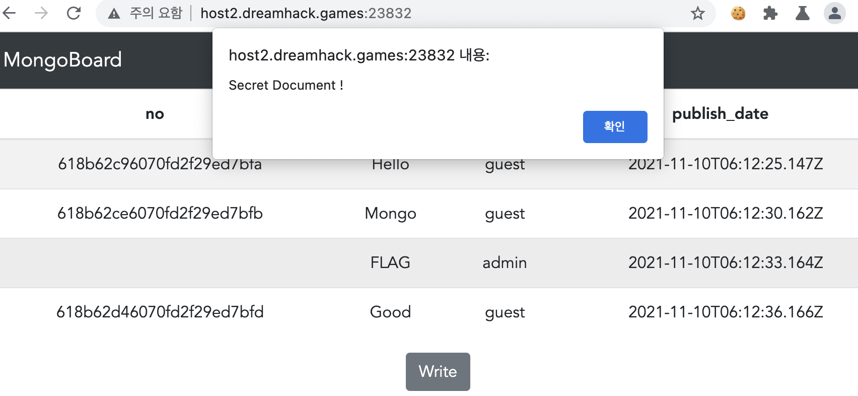 그러나 FLAG 게시물은 no가 없다. 하지만 나는 검색을 통해 MongoDB의 ObjectID가 어떤 구조로 이루어진 데이터인지를 안다.