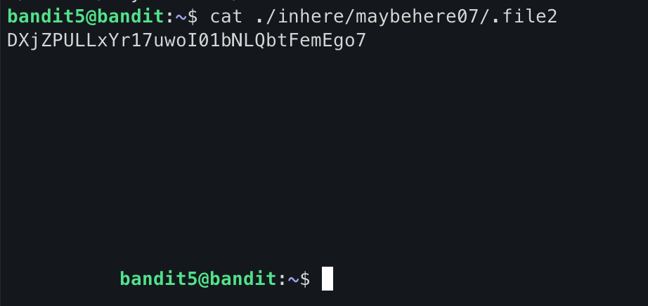 Season 1/워게임 [OverTheWire System - Bandit] Level 5 >> Level 6 작성자 - LRTK Level Goal The password for the next level is stored in a file somewhere under the inhere directory and has all of the following properties: human-readable 1033 bytes in size not executable 다음 단계의 암호는 inhere 디렉토리 아래의 파일에 저장되며 다음 속성을 모두 가집니다. 인간이 읽을 수 있는 파일 (아스키 코드) 1033 byte의 크기 실행 불 가능한 파일 Hint 1. ls 명령어 2. find 명령어 3. cat 명령어 Write Up 더보기 ls 명령어를 통해 inhere 디렉토리를 확인한 결과 엄청 많은 디렉토리들이 존재하는 것을 볼 수 있었다. 나는 하나하나 들어가서 확인하는 방법은 힘들다고 생각하여 find 명령어를 이용하여 문제 설명에 나온 조건들을 넣어서 검사해보기로 하였다. 위 사진은 file 사이즈가 1033 byte인 파일만 검색한 모습이다. cat 명령어로 확인하니, bandit6의 pw가 보였다. bandit6 :: DXjZPULLxYr17uwoI01bNLQbtFemEgo7 공유하기 게시글 관리 MSS 'Season 1 > 워게임' 카테고리의 다른 글 [OverTheWire System - Bandit] Level 7 >> Level 8 (0) 2021.12.13 [OverTheWire System - Bandit] Level 6 >> Level 7 (0) 2021.12.13 [OverTheWire System - Bandit] Level 4 >> Level 5 (0) 2021.11.24 [OverTheWire System - Bandit] Level 3 >> Level 4 (0) 2021.11.24 [OverTheWire System - Bandit] Level 2 >> Level 3 (0) 2021.11.24 Contents 당신이 좋아할만한 콘텐츠 [OverTheWire System - Bandit] Level 7 >> Level 8 2021.12.13 [OverTheWire System - Bandit] Level 6 >> Level 7 2021.12.13 [OverTheWire System - Bandit] Level 4 >> Level 5 2021.11.24 [OverTheWire System - Bandit] Level 3 >> Level 4 2021.11.24 댓글 0 + 이전 댓글 더보기